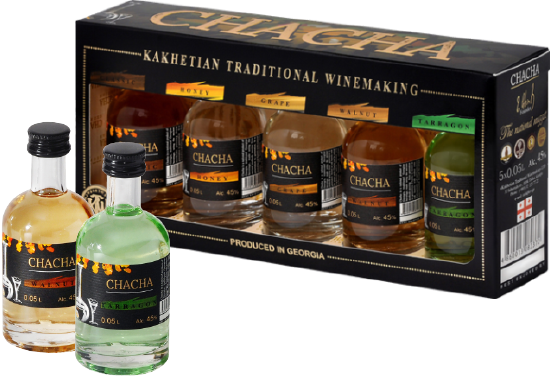 ჭაჭა - სასაჩუქრე შეფუთვა (კლასიკური, თაფლი, ყურძენი, კაკალი, ტარხუნა)
